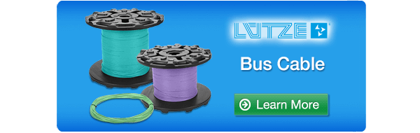 LUTZE continuous flexing and standard Profibus cables with one twisted pair are shielded and include a purple PUR or PVC jacket highly resistant to oils. The 24 AWG continuous flexing version is ideal for applications requiring constant movement and repetitive flexing. A 22 AWG shielded Profinet version is also available with 4 twisted pairs and a polyolefin green jacket designed for reliable communication in noisy environments.
