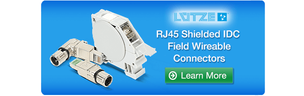 The new LUTZE RJ45 shielded IDC field wireable connectors start at $35.00, bulkhead adapters start at $38.00, and the DIN rail mounted holder modules are priced at $28.00.