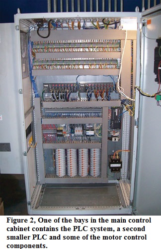 While the plant footprint was quite large, we were able to consolidate the controls to a single four-bay control cabinet. Over 65 AC induction motors are used in conjunction with numerous variable frequency drives to control the various conveyors, material handling equipment and processing equipment. Our client wanted the capability to monitor each of these motors, their status, any faults, and be able to view and change variable frequency drive parameters.