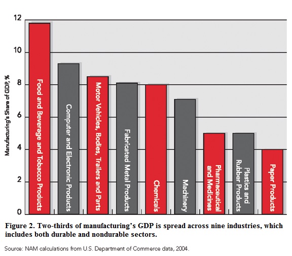 One of the key observations made in the report is that manufacturing influences the U.S. Gross Domestic Product more than any other market segment. Its contribution to real growth since 2001 ranks highest among all sectors at 15 percent. In 2005 alone, manufacturing contributed $1.5 trillion to the GDP and it continues to grow faster than the economy overall.