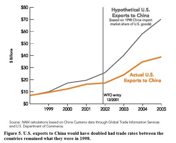 Establishing fair rates with China is especially difficult. China artificially pegs its currency to the value of the U.S. dollar. Worse, since 1998, it has continually reduced the percentage of U.S. goods it imports. Because of this growing imbalance, the U.S. is no longer the largest exporter in the world. That distinction now belongs to Germany, not surprising given that China imports 50 percent more goods from the European Union than the U.S.