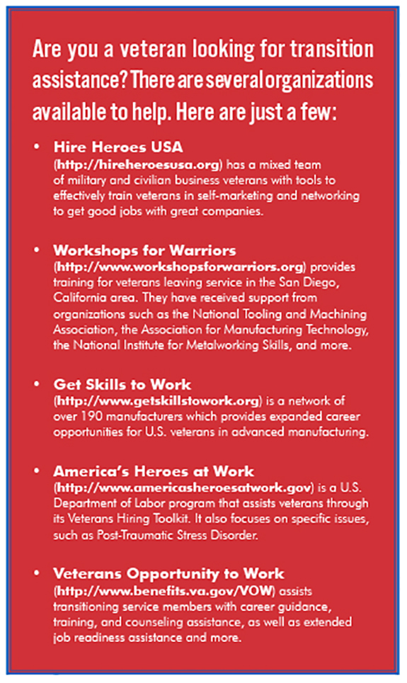 Manufacturers have begun enlisting assistance from job placement services and programs whose emphasis is on helping these veterans and their transition from military life to the civilian workforce.