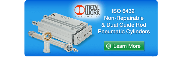 Metal Work heavy-duty metric dual guide rod cylinders are ideal for applications requiring precision mounting and tolerance to a sideload. These cylinders feature dual guide rods, magnetic pistons, bronze bushings, anodized extruded aluminum alloy housing, and switch mounting slots. Available in bore sizes ranging from 16mm to 63mm and stroke lengths of 10mm to 400mm, these cylinders are double-acting, have a maximum operating pressure of 145 psi, and are interchangeable with other common brands of metric dual guide rod cylinders.
