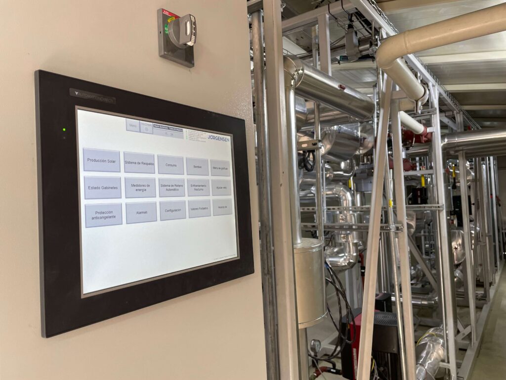 Jorgensen developed the S200 automation system based on an AutomationDirect Productivity2000 micro-modular PLC and a C-more 15” HMI. While automation of consumption/distribution systems and electric backup were straightforward using traditional logic and closed loop feedback control, the solar thermal system was more complicated.