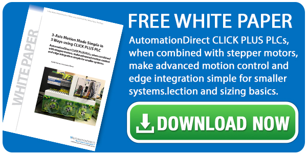 AutomationDirect CLICK PLUS PLCs, when combined with stepper motors, make advanced motion control and edge integration simple for smaller systems.