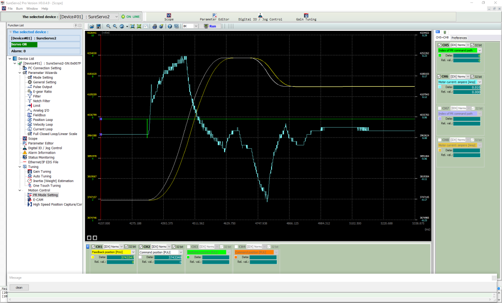 - Built-in auto-tuning to optimize motor operation with the drive, and an integrated software oscilloscope so users can compare commanded operations with actual movements for commissioning and troubleshooting (Figure 3).