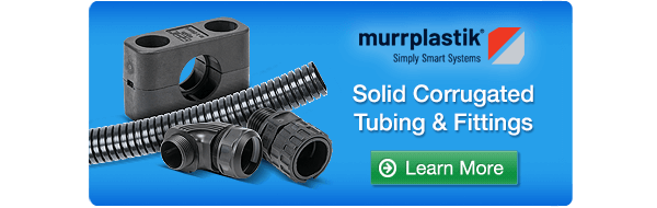 AutomationDirect has added Murrplastik solid corrugated tubing which provides protection, reliability, and adaptability for wire and cable in demanding environments. The EW-PAB series delivers both chemical and impact resistance for static installations under medium to high mechanical loads. Crafted from modified polyamide 6, this solid-wall tubing is flame-retardant, low-smoke, and engineered for long-term resilience in building and plant engineering. With a V0 UL 94 flammability rating and flexural fatigue strength of more than 11,000 cycles, it provides robust, low-maintenance performance.