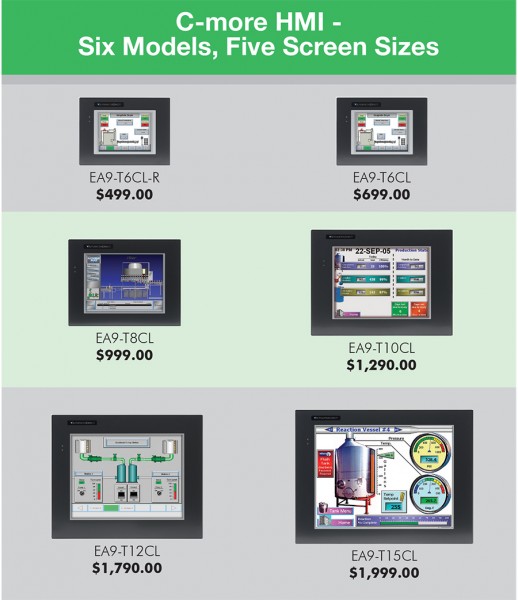 The popular C-more HMIs have always been a great value, but now they are better than ever. We have included some of the latest technologies in the new EA9 series C-more panels, and all for a lower cost to you. But don’t let the lower price fool you; with a redesigned more robust housing, thinner bezel, LED backlights and more communication and data storage options, the EA9 series offers even more value and performance than the earlier EA7 series panels.