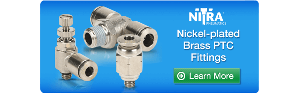 August 7, 2024 – AutomationDirect has added a variety of new NITRA push-to-connect fittings. These fittings feature durable nickel-plated brass bodies, threads, and release sleeves. They have a maximum pressure rating of 300 psi and can withstand temperatures up to 175℉.