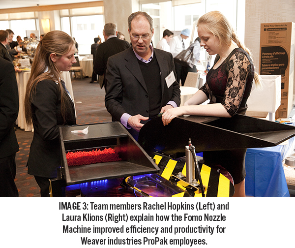 In order to automate production, the CHS Engineering students visited ProPak’s production facility to gather data which would aid them in the design, fabrication and testing of a prototype assembly machine which presses a mixer into a nozzle to a specified depth required by Fomo Products.