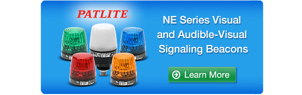 November 1, 2023 – AutomationDirect has added Patlite NE series visual and audible-visual signaling beacons to their portfolio of industrial signaling devices. These signaling devices are offered as visual-only beacons or as combination devices with a buzzer or selectable tone alarm (8 different tones) and signal beacon.