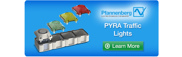 AutomationDirect.com has added Pfannenberg PYRA series custom traffic light systems which consist of pre-wired bases, industrial traffic light elements, and signal horns that can be assembled into a custom multi-tier indicator. PYRA LED traffic light bases are pre-wired for a 1-to-4 stage visual traffic light using assorted colored light elements (red, green, yellow, or blue) or for a 1-to-3 stage audible-visual traffic light with a 105 dB signal horn.