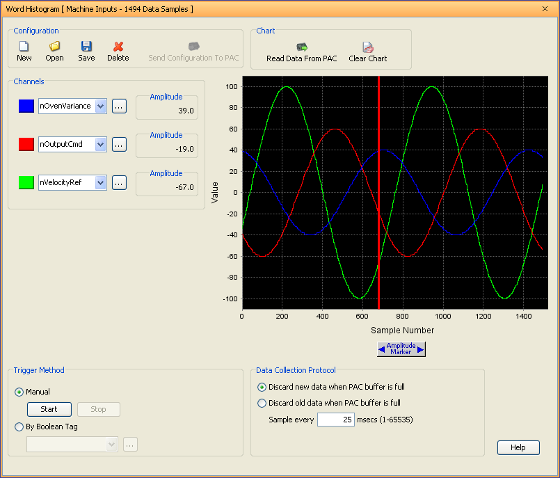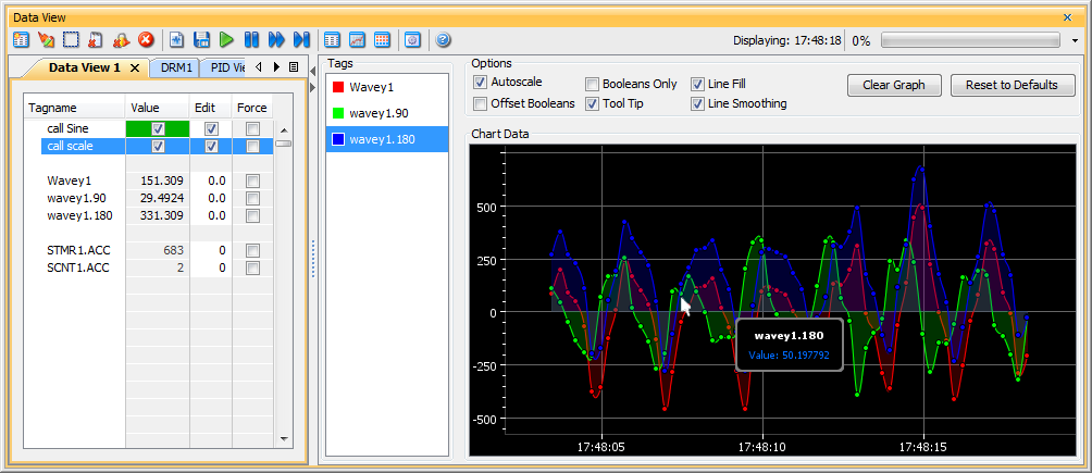 Data View windows allow users to monitor and manipulate PLC logic values in real time. Although most PLC software will have a way to do this, there are some advanced capabilities, graphical trend charts for instance, that you may want to keep an eye out for. Also, bit and word histograms allow you to sample and plot logic values over time. These can be set up to sample data as often as you choose and can be very helpful when troubleshooting.