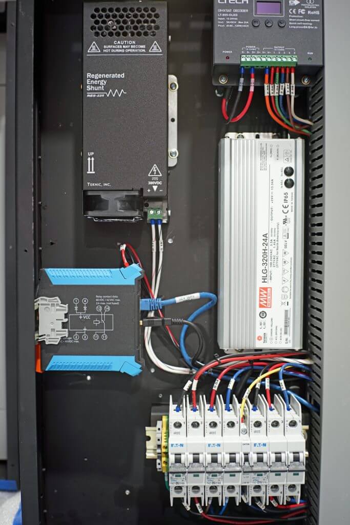 Second, they designed and fabricated 20 standard control cabinets, one for each servo motor, containing the: