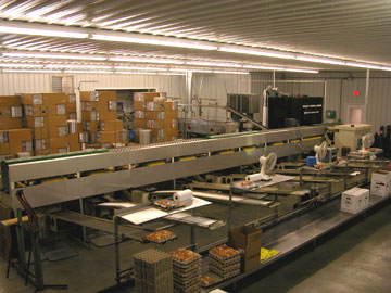 Originally, workers had to start and stop the conveyors manually to control the egg flow. Flow management was difficult, and the process labor intensive; only one barn could be completed at a time. With an average egg production of 80,000-90,000 eggs per day, Pete and Gerry were looking for a way to increase efficiency and minimize human error.