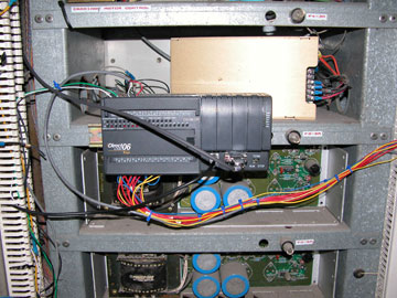 The speed of the main transport conveyor leading from the barns into the processing facility is controlled by a 3/4 hp motor and GS2 inverter receiving commands from a DirectLOGIC D0-06DR PLC .