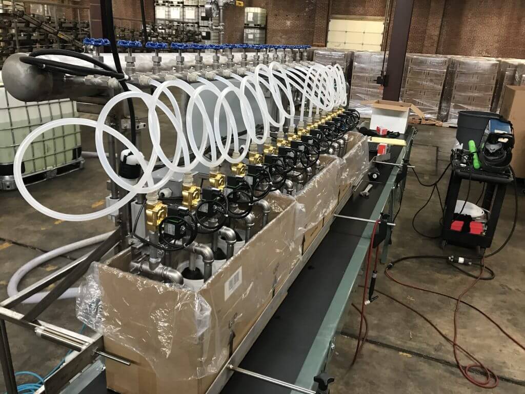 Based on the success of these two machines, the manufacturers commissioned RHMC to create three more filler machines from the ground up, using knowledge gained from the first two builds—and increasing the automation to include associated conveyors, box/tub handling, a supply manifold, and movable filler heads.