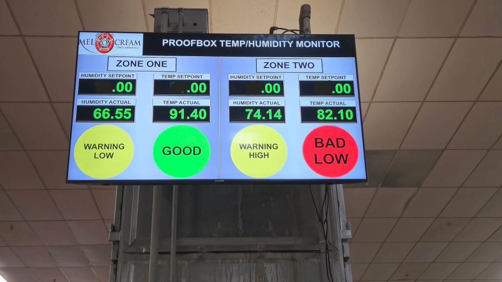 Because the conditions inside the proofing box can affect rise—and overall process—time, the production team was eager to use automation to achieve better consistency. In addition, it was critical to be notified if conditions inside the proofing box begin to drift, so corrective action can be taken. With this in mind, the production managers and bakery leadership requested greater visibility to conditions inside the proofing box and they turned to Roger for solutions.