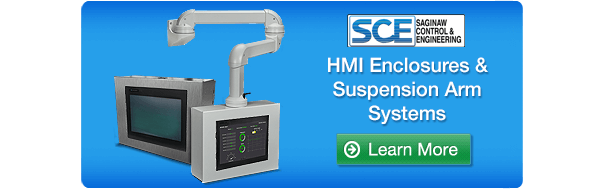 The new Saginaw HMI enclosures start at $505.00; suspension arm components start at $93.00 and HMI enclosure accessories start at $31.00.