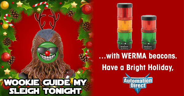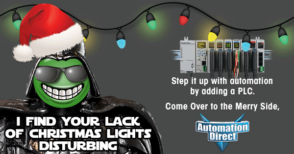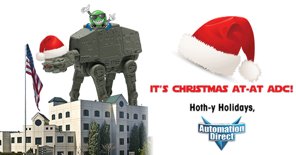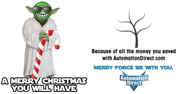 The most magical time of the year is finally here… AND it’s never a bad time to celebrate with Star Wars. So we at AutomationDirect thought what better way to wish someone season’s greetings than with a Star Wars themed holiday card that has a touch of industrial automation worked in. We hope you enjoy these five awesome holiday cards and share them with your family and friends. Click the image to download and print, or share them via Facebook, Twitter and e-mail. Merry Force be with you this holiday season!