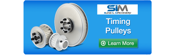 April 17, 2024 – AutomationDirect has added SIM timing pulleys to their Power Transmission product category. 5M pitch (5mm) pulleys in bore sizes of 5/8”, ¾”, 7/8”, or 1-1/8” with 20 to 120 teeth are now available, as are additional MXL pitch (0.08in) pulleys in bore sizes of 1/8”, 3/16”, and ¼” with 14 to 72 teeth, XL pitch (1/5in) pulleys in bore sizes of ¼”, 5/16”, or 3/8” with 10 to 72 teeth that can accommodate a ¼” or 3/8” wide belt, and L pitch (3/8in) pulleys in bore sizes from 3/8” to 1-1/4” with 10 to 40 teeth that can be driven by a ½” or 1” wide belt.