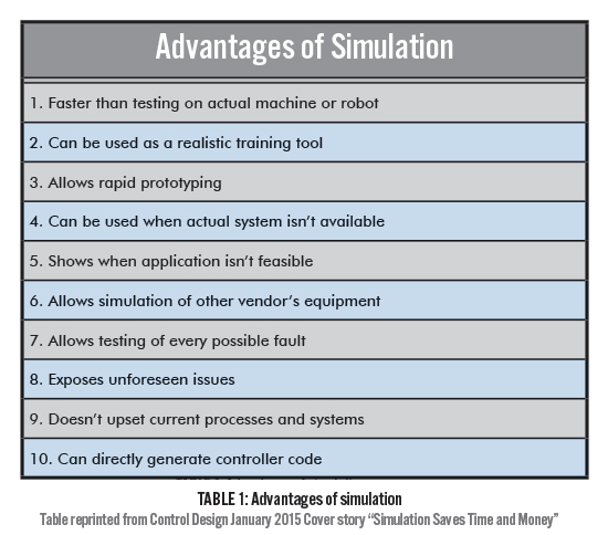 Whether the equipment is available, is in development or it doesn’t exist yet—simulation can reduce design time, increase performance and ensure a smooth and quick startup. Several advantages are listed in Table 1.
