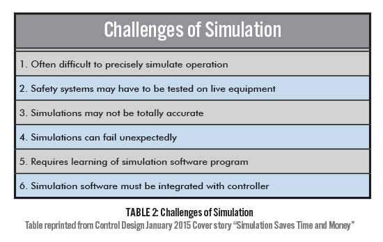 While simulation can verify if the solution will perform as expected, before testing on the actual equipment, it’s not without its problems as listed in Table 2. OEMs and system integrators, who face these challenges on a regular basis, elaborate further in the following section.