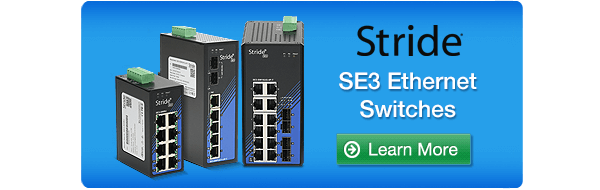 The new STRIDE SE3 series unmanaged Ethernet switches start at $78.00, PoE+ versions start at $249.00, and the IP67 washdown model is priced at $279.00.