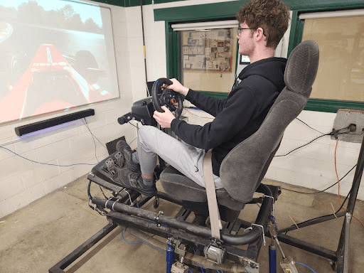 The project required careful planning and execution. The students designed a robust frame capable of supporting the combined weight of the cockpit, a student and a car seat—approximately 400 lbs in total. Under Harpell’s guidance, students welded and machined parts to create a steel frame that promised both stability and flexibility. The simulator’s realistic movements were achieved through the use of automotive suspension techniques and components, to provide a realistic driving experience.