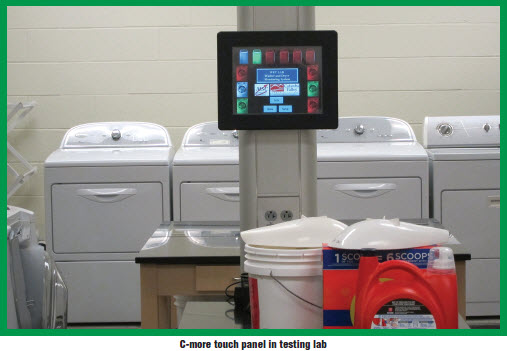 To take advantage of the C-more Remote Access capability, the students acquired two separate, low cost PCs, each with a 32” flat screen LCD monitor, which they mounted in two of the areas where technicians spend their time performing hands-on testing and other tasks. Now the technicians simply glance up at the screens to see the status of any washer and dryer being used for their tests.