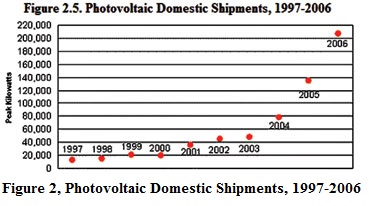 1) US DOE, Energy Information Administration report “Solar Thermal and Photovoltaic Collector Manufacturing Activities 2006” Published 10/2007.http://www.eia.doe.gov/cneaf/solar.renewables/page/solarreport/solar.html