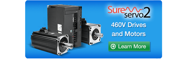The new 460VAC SureServo2 drives start at $460.00, and the matching 400W motors start at $360.00