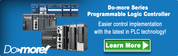 The Do-more PLC is fast, has plenty of memory, and includes multiple communication options such as serial, USB and embedded Ethernet. It can be configured for several separate Ethernet communications ports, each running multiple protocols. The Do-more PLCs are programmed with the Do-more Designer software, available free online.