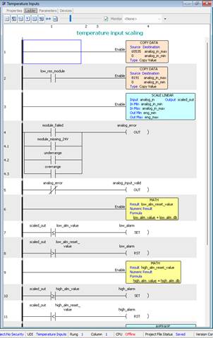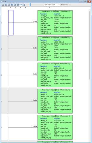 For example, a temperature sensor UDI can handle scaling, diagnostics, and alarm logic internally, presenting a clean interface to the rest of the program. A UDS could be used in conjunction with the UDI, so that a single data element contains all related sub-elements. Encapsulation not only reduces repetition but also improves readability by hiding implementation details behind well-defined instruction blocks. Optional password protection further safeguards proprietary logic, an important consideration for OEMs.