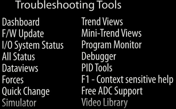 The video also talks about how to use Dataviews to quickly see what’s happening in the program. Program it to just see what you want without having to open the whole data table and search for a particular piece of data. The list of tools is impressive, and tools not covered in the troubleshooting video are covered in other videos, which can be found using the video search and download utility accessed on the Start Page.
