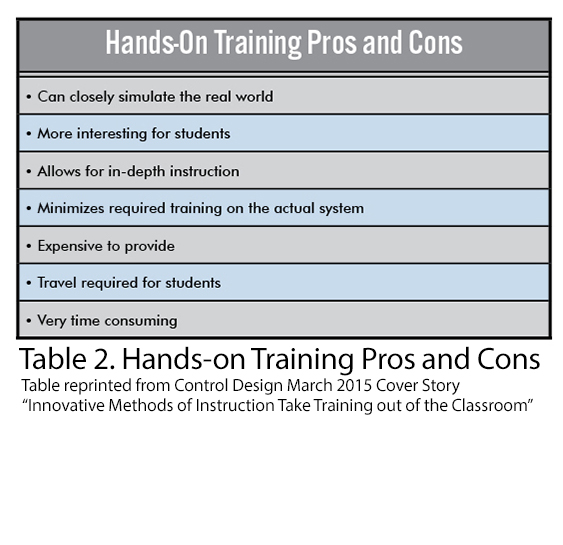 In some instances, hands-on instruction has advantages over online training, but it has its own set of issues. The simulation of real world machines, process and equipment is a great learning tool.