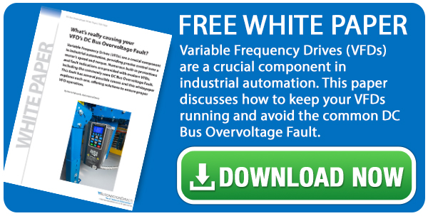 Variable Frequency Drives (VFDs) are a crucial component in industrial automation, providing precise control over a motor’s speed and torque. Numerous built-in protections and fault indications are provided with modern VFDs, including the commonly seen DC Bus Overvoltage Fault. This fault has several possible causes and this whitepaper explores each one, offering solutions to ensure proper VFD operation.