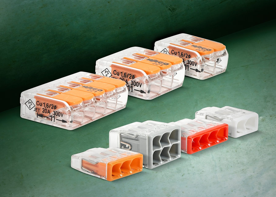 The 221 series connectors accommodate solid, stranded, and fine-stranded conductors in two variants from 12-24 AWG and 10-20 AWG. The 221 series inline splicing connector includes all the trusted advantages of the 221 series but in a slim design.