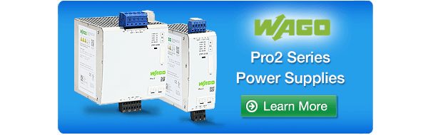 The new WAGO Pro2 power supplies are UL listed, CSA approved, RoHS compliant, and CE marked. They offer a 2-year warranty and start at $185.00.
