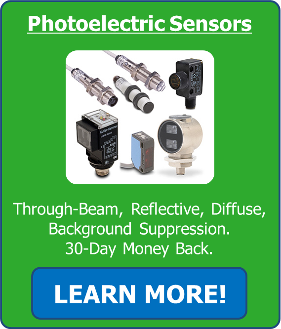 There are many different styles of photoelectric sensors, but really only four basic technologies: through-beam, reflective, diffuse, and background suppression. The chart describes some advantages and disadvantages of each technology. To learn more about AutomationDirect’s photoelectric sensors visits www.AutomationDirect.com/photoelectric.