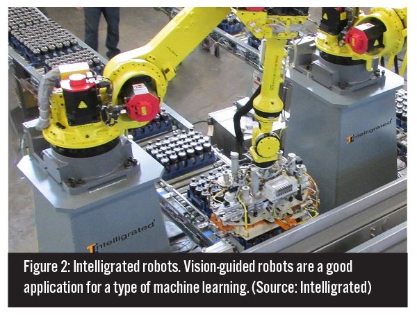 “When discussing machine learning, the top item is the ability to process large amounts of data analytics to identify patterns and trends not readily visible using traditional statistical tools. This information can be leveraged for preventive maintenance and/or machine and system optimization improvements. When considering machine learning for robotic and computer vision tasks, such as object recognition, pose estimation and complex motion involving perception, it provides improved robotic operation and performance (Figure 2)”, related Wicks.